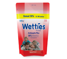 Wetties come in antiseptic, lemon and cologne variants. We have conveniently sized smaller packs that you can slip into your pocket or bag and carry with you on the go. We also have large packs for your family to share at home.